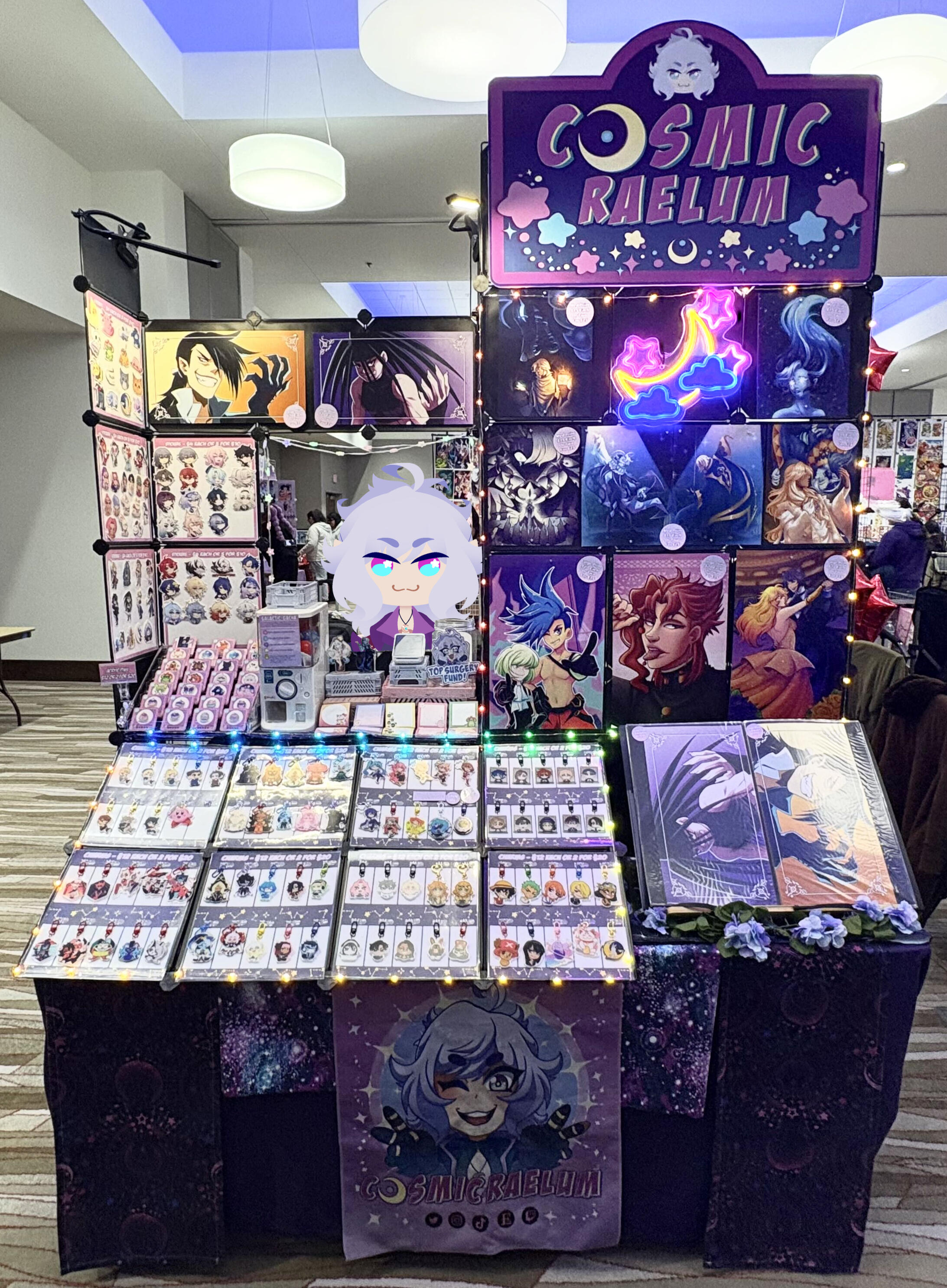Cosmic Raelum is your lovable lad from outer space! Traveling the galaxy with their partner in both business and love, Bee, they have been apart of the convention community for over a decade. They love using artwork to connect with all nerdy walks of life. From mainstream fandom to niche pop-culture and original art, there is something for everyone at their booth!For the OC and DND lovers out there, Cosmic also takes onsite traditional and digital commissions during the convention.This portfolio showcases some of our favorite works, please feel free to check out our etsy or other socials for more examples!